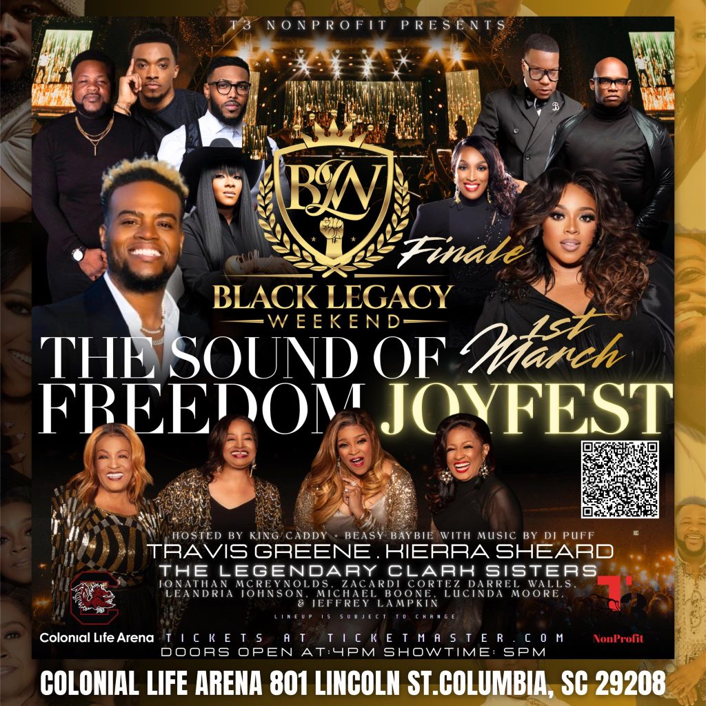 THE SOUND OF FREEDOM JOYFEST is taking over Colonial Life Arena with gospel greatness all on one stage featuring Kierra Sheard, The Legendary Clark Sisters, Jonathan McReynolds, Darrel Walls, Zacardi Cortez, Le’Andria Johnson, Michael Boone, Lucinda Moore & Jeffrey Lampkin!